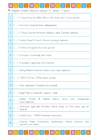 Aşağıdaki cümlelerin karşılarına doğruysa “D”, yanlışsa “Y” yazalım.