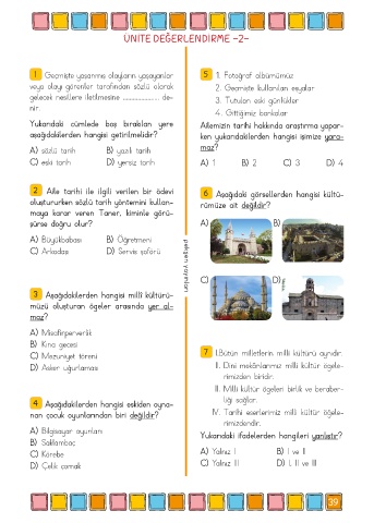 D) Asker uğurlaması II. Dini mekânlarımız milli kültür ögele-