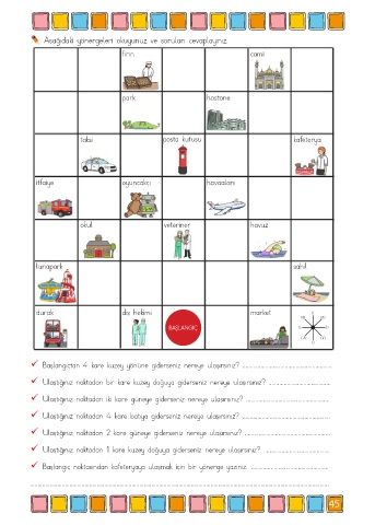 Başlangıçtan 4 kare kuzey yönüne giderseniz nereye ulaşırsınız? ...........................................................