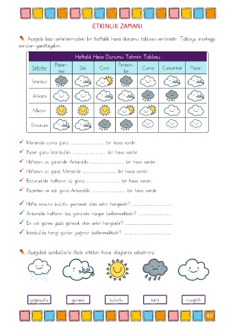Aşağıda bazı şehirlerimzdeki bir haftalık hava durumu tablosu verilmiştir. Tabloyu inceleyip