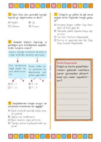 7 Eğimi fazla olan yerlerdeki toprağın 1 Türkiye’nin yer şekilleri ile ilgili olarak
