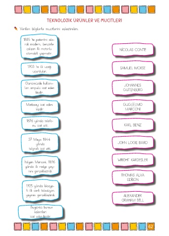 Verilen bilgilerle mucitlerini eşleştirelim.