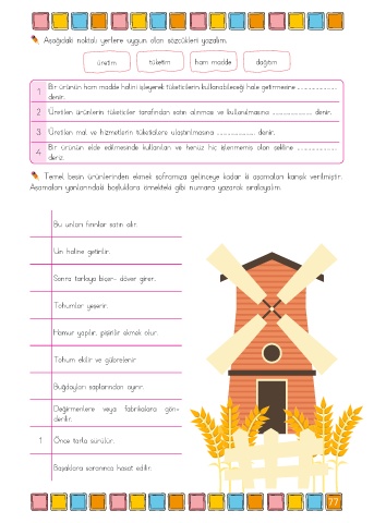 Temel besin ürünlerinden ekmek soframıza gelinceye kadar ki aşamaları karışık verilmiştir.