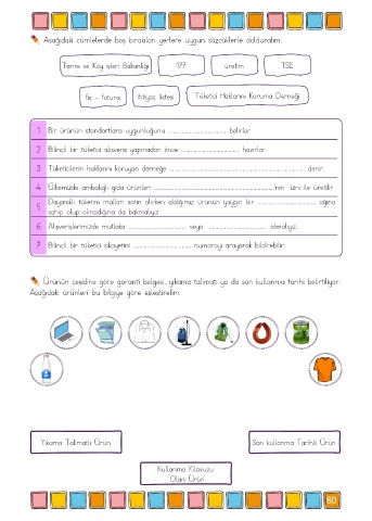 Ürünün çeşidine göre garanti belgesi, yıkama talimatı ya da son kullanma tarihi belirtiliyor.