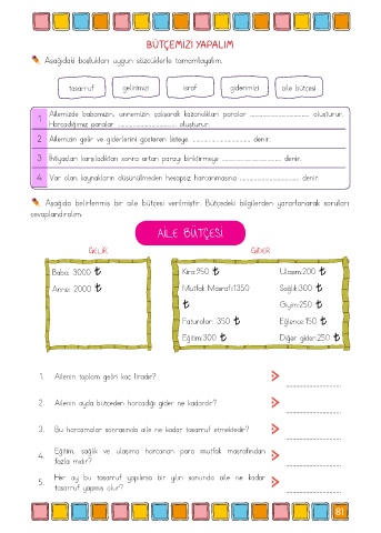 2 Ailemizin gelir ve giderlerini gösteren listeye. ..................................... denir.