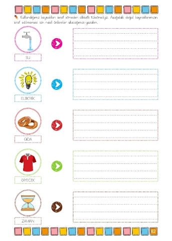 Kullandığımız kaynakları israf etmeden dikkatli tüketmeliyiz. Aşağıdaki doğal kaynaklarımızın