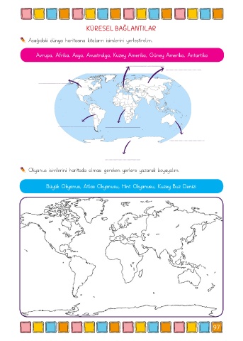 Okyanus isimlerini haritada olması gereken yerlere yazarak boyayalım.