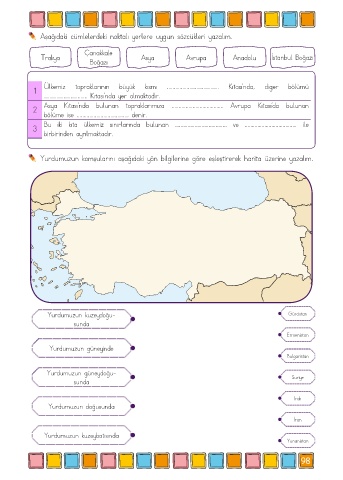 Yurdumuzun komşularını aşağıdaki yön bilgilerine göre eşleştirerek harita üzerine yazalım.
