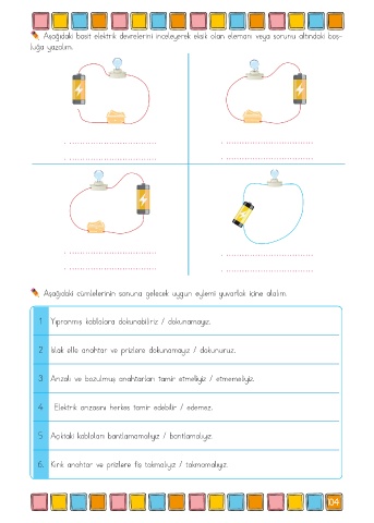Aşağıdaki basit elektrik devrelerini inceleyerek eksik olan elemanı veya sorunu altındaki boş-