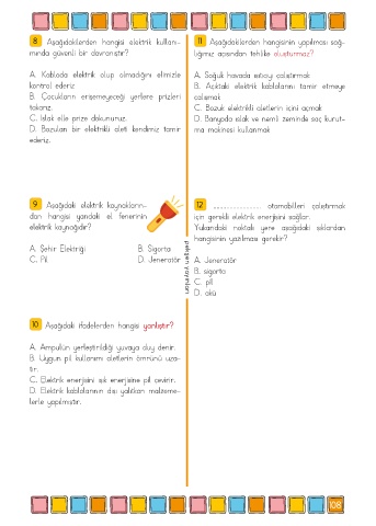 8 Aşağıdakilerden hangisi elektrik kullanı- 11 Aşağıdakilerden hangisinin yapılması sağ-