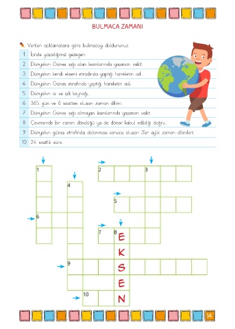 4 Dünya’nın Güneş etrafında yaptığı hareketin adı.