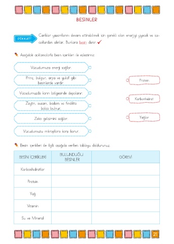 Aşağıdaki açıklamalarla besin içerikleri ile eşleştiriniz.