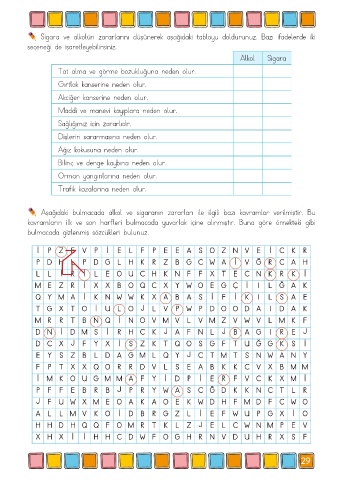 Aşağıdaki bulmacada alkol ve sigaranın zararları ile ilgili bazı kavramlar verilmiştir. Bu