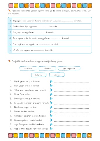 Aşağıdaki cümlelerde yapılan eylemin itme ya da çekme olduğunu belirleyerek noktalı yer-