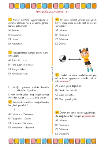 1 Kuvvet cisimlere uygulandığında ci- 4 Bir cisme hareket yönüyle aynı yönde
