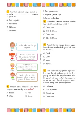 7 Cisimleri bükersek veya sıkarsak ci- I. Kaza yapan araç