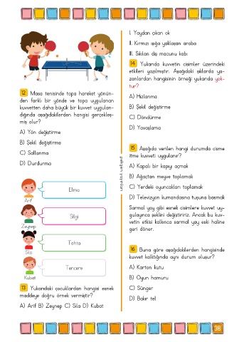 12 Masa tenisinde topa hareket yönün- A) Hızlanma