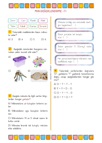 3 Aşağıda mıknatıs ile ilgili verilen bilgi- D) D – Y – D – Y
