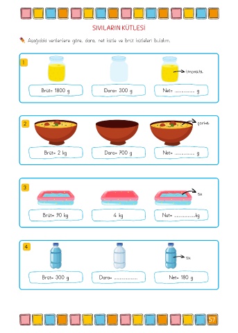 Brüt= 2 kg Dara= 700 g Net= .................. g