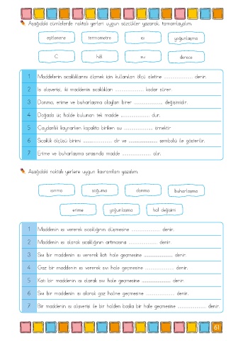 7 Bir maddenin ısı alışverişi ile bir halden başka bir hale geçmesine ........................... denir.
