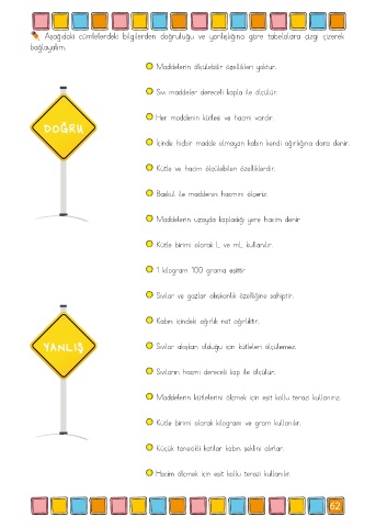 Aşağıdaki cümlelerdeki bilgilerden doğruluğu ve yanlışlığına göre tabelalara çizgi çizerek