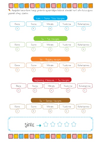 Aşağıdaki karışımların hangi yöntemle ayrıştırıldığını bularak altındaki harfi şifre kutucuğuna