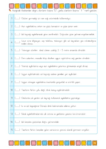 1 (........) Gözleri yormadığı için sarı ışığı evlerimizde kullanmalıyız.