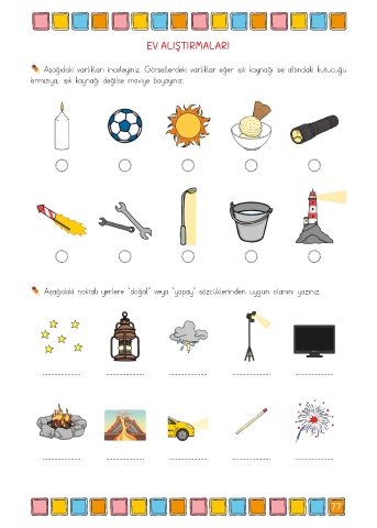 Aşağıdaki varlıkları inceleyiniz. Görsellerdeki varlıklar eğer ışık kaynağı ise altındaki kutucuğu