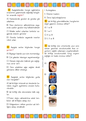 8 Aşağıdakilerden hangisi aydınlatma I. Kurbağalara