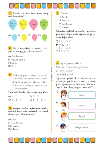 8 Hangi seçenekteki aydınlatma aracı C) III, II, I, V, IV