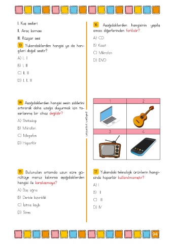15 Bulunulan ortamda uzun süre gü- 17 Yukarıdaki teknolojik ürünlerin hangi-