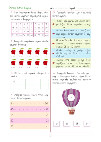 1. 4’ten başlayarak ileriye doğru dör- 5. Aşağıdaki ifadeleri uygun sayılarla