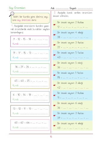 Sayı Örüntüleri Adı: ....................... Soyadı: ...........................