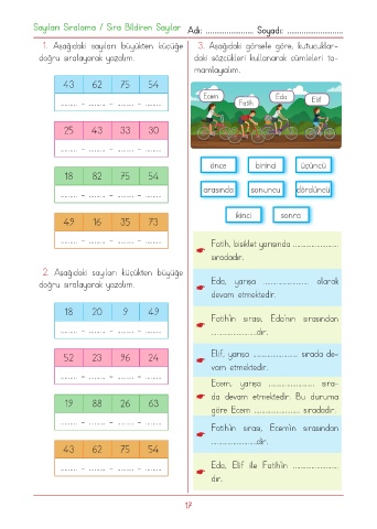 Sayıları Sıralama / Sıra Bildiren Sayılar Adı: ....................... Soyadı: ...........................