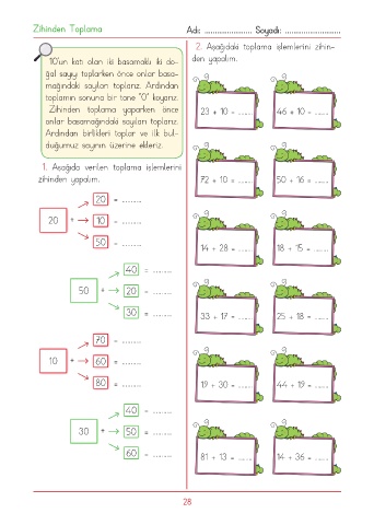 Zihinden Toplama Adı: ....................... Soyadı: ...........................