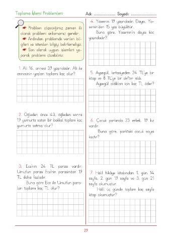 Toplama İşlemi Problemleri Adı: ....................... Soyadı: ...........................