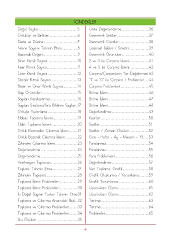 Birer Ritmik Sayma .....................................10 2 ve 3 ile Çarpma İşlemi ..........................41