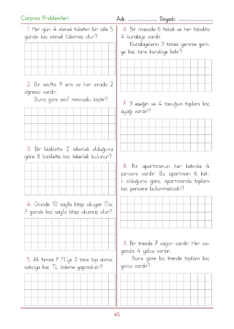 Çarpma Problemleri Adı: ....................... Soyadı: ...........................