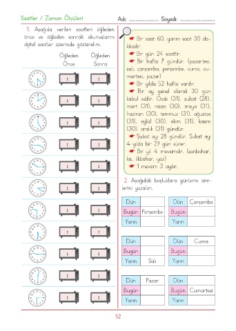Saatler / Zaman Ölçüleri Adı: ....................... Soyadı: ...........................