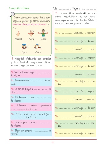standart olmayan ölçme birimleri de- sonuçlarını noktalı yerlere yazalım.