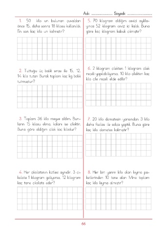 3. Toplam 36 kilo meyve aldım. Bun- 7. 20 kilo domatesin yarısından 3 kilo