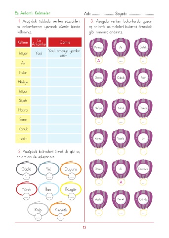 Eş Anlamlı Kelimeler Adı: ....................... Soyadı: ...........................