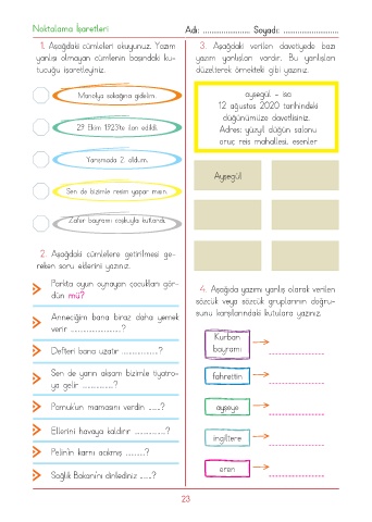 1. Aşağdaki cümleleri okuyunuz. Yazım 3. Aşağdaki verilen davetiyede bazı