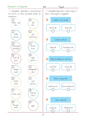 Atasözleri ve Deyimler Adı: ....................... Soyadı: ...........................