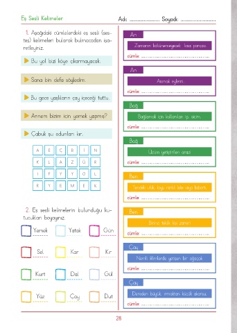 2. Eş sesli kelimelerin bulunduğu ku- Ben