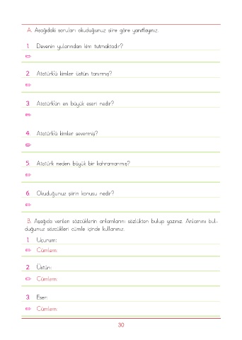 A. Aşağıdaki soruları okuduğunuz şiire göre yanıtlayınız.