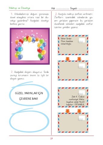 1. Arkadaşlarınızı doğum gününüze 2. Aşağıda mektup zarfları verilmiştir.