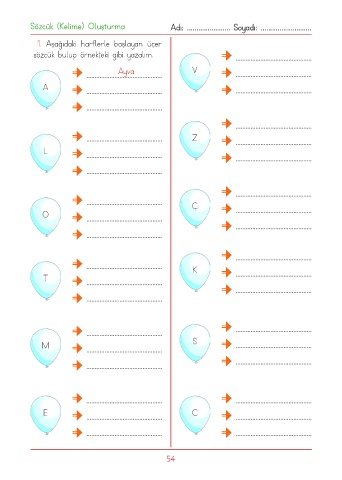 Sözcük (Kelime) Oluşturma Adı: ....................... Soyadı: ...........................