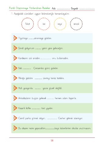 1. Aşağıdaki cümleleri uygun kelimeleriyle tamamlayalım.