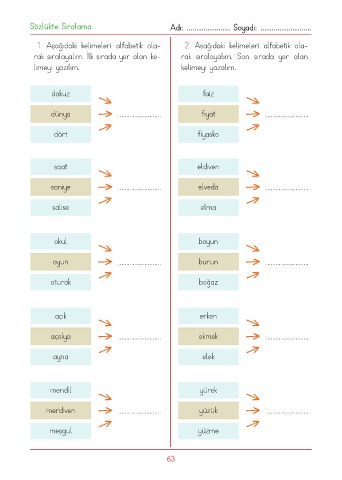 1. Aşağıdaki kelimeleri alfabetik ola- 2. Aşağıdaki kelimeleri alfabetik ola-